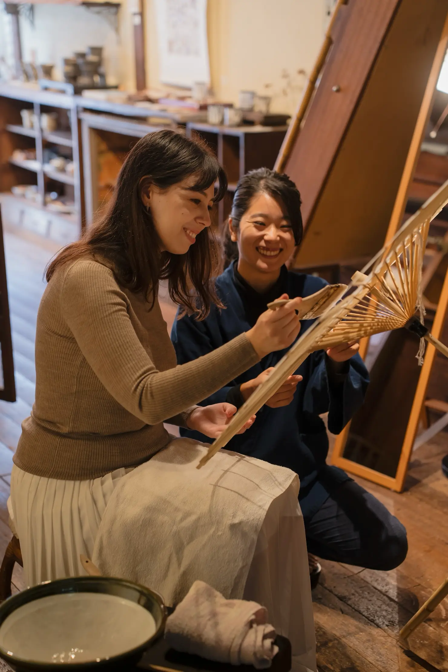 職人が実際に和傘を制作するのと同じ方法で傘を作る体験を。